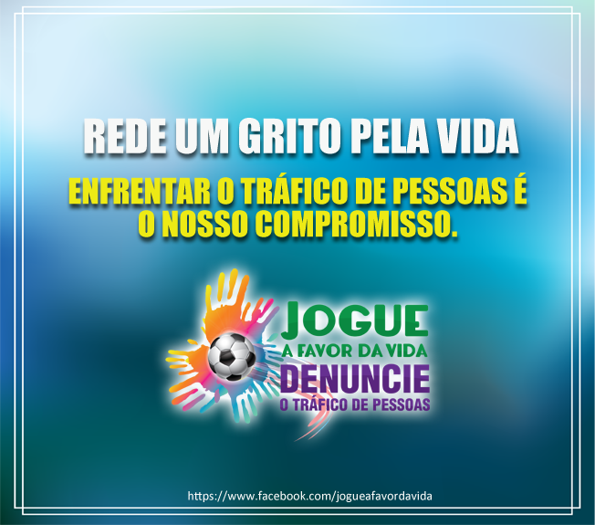 Tráfico de Pessoas Um Grito pela Vida inicia sua CAMPANHA e sob o slogan JOGUE A FAVOR DA VIDA, fazendo uma analogia com os jogos de futebol e pedindo a ação de denúncia.